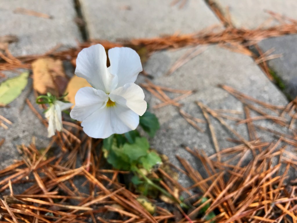 Yksinäinen orvokki, tuo tummasilmä, kultasydän pieni puskee pihalaattojen välistä uhmaten kylmää ja pikkuhiljaa päälle kaatuvaa kaamosta. Ollaanpa nyt kerrankin reippaita ja otetaan kerta kaikkiaan hänestä nyt mallia, eikä pienistä vastatuulista ja räntäsateista olla moksiskaan.