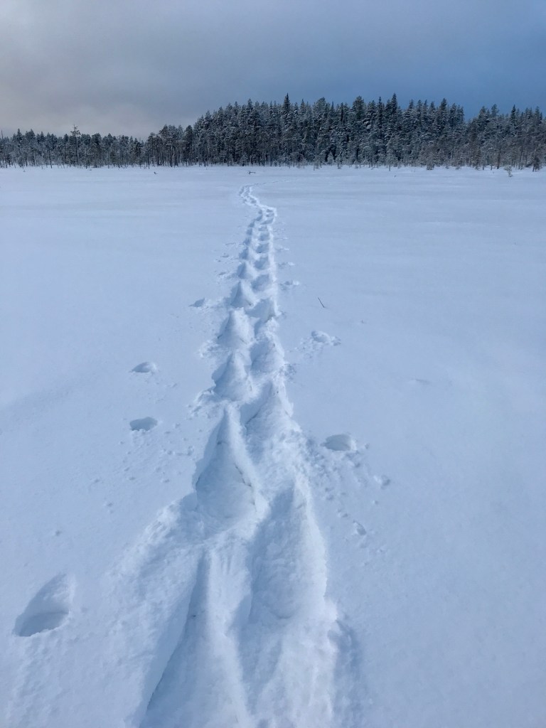 Eilen olisi ollut niin rutkasti hommia, mutta ihan pakolla väänsin itseni autoon, lumikengät ja sauvat mukaan, lounasruoka reppuun ja menoksi kohti lempisuota. Talonmies ei innostu näistä mettäilyistä, eikä Rakkia voi ottaa noin paksuun hankeen, joten läksivät Rakin kanssa ”leikkipuistoon” 😀 Tahtoo sanoa koirapuistoon. Rakilla on siellä joku ajokoirakaveri, jonka kanssa resuaa ja painii niin, että lopun iltaa pysyy kuosissaan. Rakki edustaa rotua, joka on isokokoinen ja toimelias. (On kieltänyt rotunsa paljastamisen, vetoaa GDPR:ään.) Loistava koira! Ihan huippukaveri, kova juttelemaan ja hyvin oppivainen. Tämä rotu on mulle tuiki tuttu, näitä koiria on ollut paljon. Tämä taitaa jäädä viimeiseksi, viittaan alkulauseisiini tässä päivityksessä.