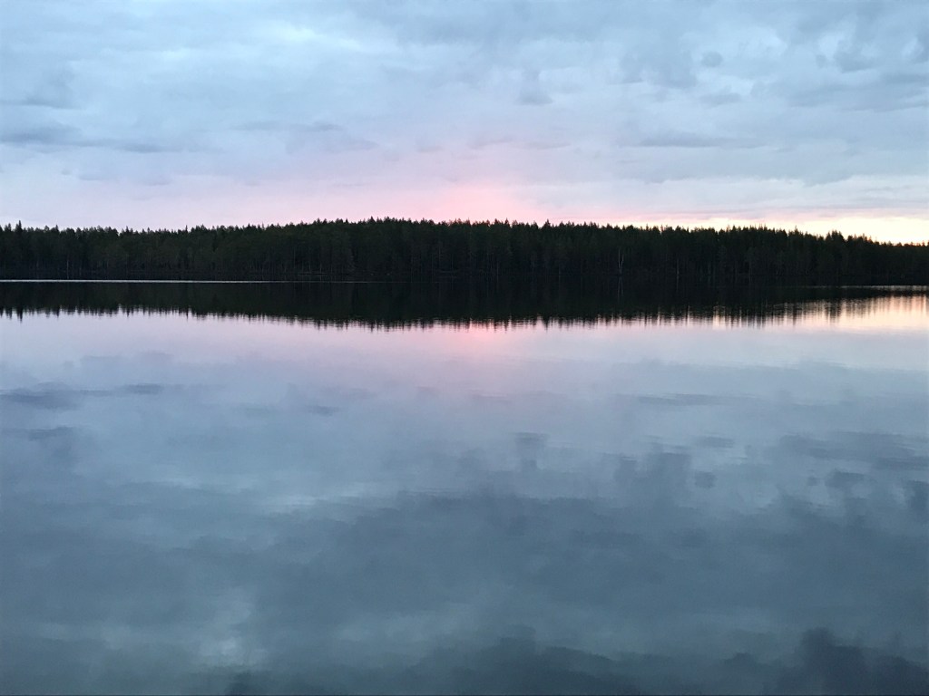 ei tullut karhua vastaan, mutta aika mökillä juoksee. Päivät kuljeskelen metsissä. Mökille palatessa kiiruhdan sankoineni rannan ja saunan väliä, sitten sama kaivolle ja takaisin, jonka jälkeen tulet saunan piisiin ja kaminaan, kiiruhtaminen puuvarastolle. Äkkiä saunaan, sitten padat porisemaan, sitten tiskaaminen, joka on sekin moninainen operaatio näissä oloissa. Toisaalta olen satsannut kertakäyttövermeisiin ja mullahan on tietysti tarkkaan pohdittu, niukka ja kevyt retkeilykeittiövälineistökin. Siis titaanikattila, lusikka ja kuppi, minikokoinen kaasukeitin.