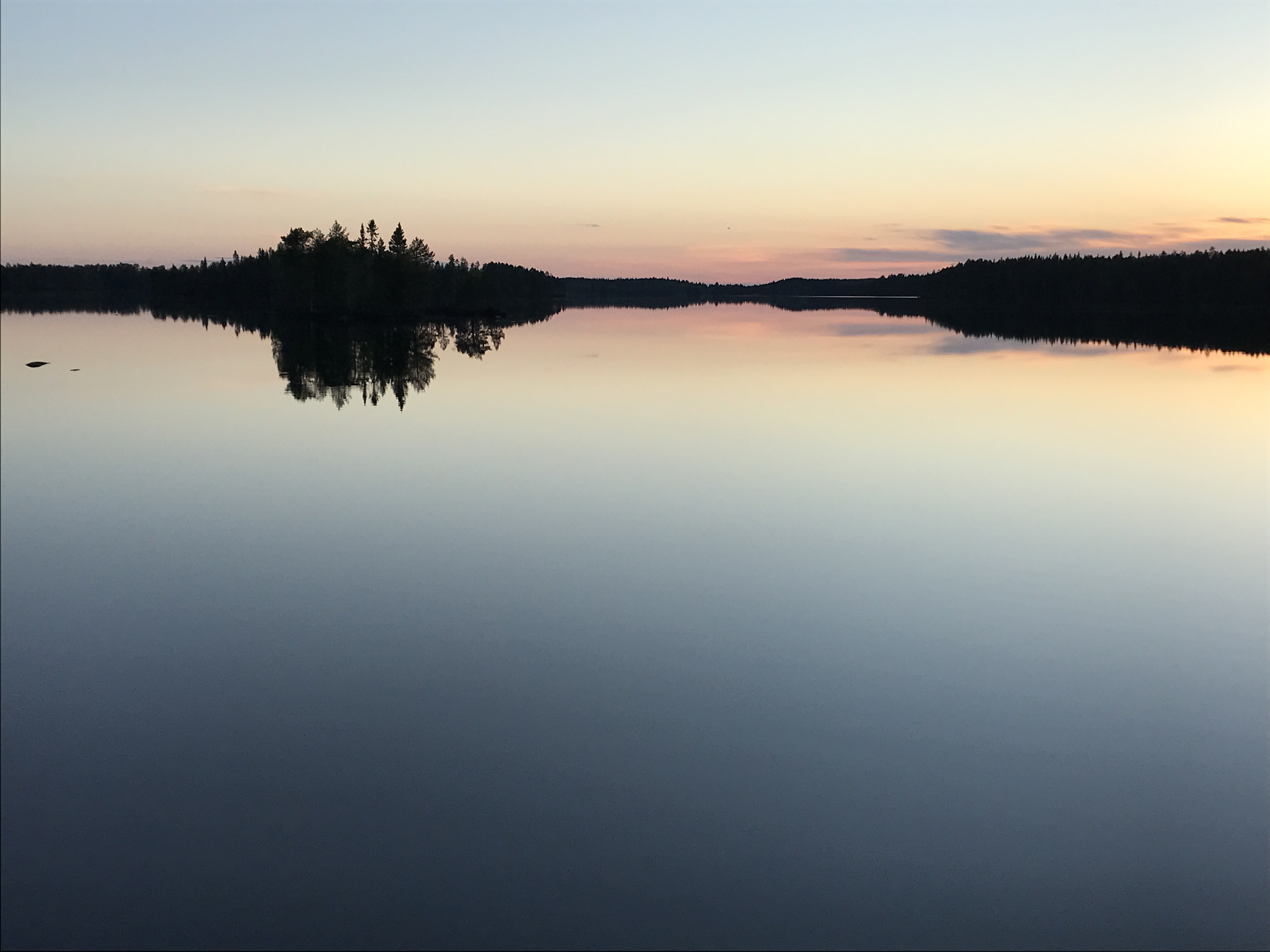 Totta puhuen aattelin ripustaa noihin mäntyihin riippumaton ja mennä makaamaan, kun yöunta tuli 4,5 h joka on aivan liian vähän. Mutta saapuessani autiomökille oli niin komea lintuin kuoro ja niiiin komea keli, etten millään tohtinut mennä maate. Juukeli vie! Kuikka huuteli ja mankui, että se osaa olla komeaääninen! Vastarannan lahukassa pesii joutsenpari ja huiluttelivat siellä hekin, teeret pulputtivat, laulurastas parodioi. Eikä tässä vielä kaikki (nyt käpydivisioonan operaatioon on valjastunut jo naamarasvapurkkikin)… tai taisi olla, sillä loppu katosi päästä naamarasvan uhkailun vuoksi.