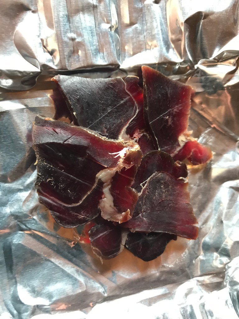Törsäsin tämmöiseen kuivalihaan, kun piipahdin ohiajomatkalla yhdessä porokunnassa. Tuohan on sikakallista, mutta aattelin sen ansainneeni ja pitkäänhän se sekä kestää että säilyy. Ei tuota nyt ihan ateriakseen tule syötyä. Mieleen tulee tässä yhteydessä myös yksi lihanvastustaja, joka keikaroi aina ruokiensa kanssa, mutta istui sitten Suurena Vaeltajana kuivalihapötköstä siivuja vuollen. Semmoinen filunkipeli ei meikäläiseltä saa arvostusta.