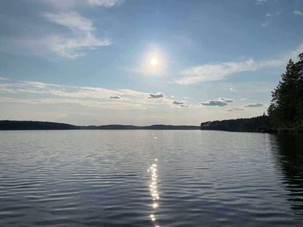 Nyt kuului muutama hiljainen haukku, mutta saattoi olla kuikan höpinöitä. Se kalasteli koko illan tuossa ulapalla. Yllättävän lähellekin kajakkia tuli kalastelupuuhissaan.