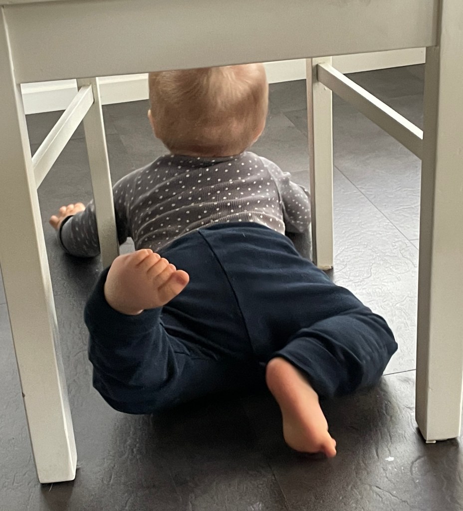 Mutta uutta sukupolvea pukkaa ”riesoiksi” mullekin. Hah, tämä kaveri on hauska piriste ja nopea uimari. Ryömii valonnopeudella tutkimaan pistorasioita ja purkamaan kirjahyllyä. Nappasi Annie Ernaux’n ”Vuodet” (upea kirja!) ja mutusteli jo kansilehteä ennen kuin ehdin hätiin. 😀 Hevoskirjat ovat myös mieleen. 🙂