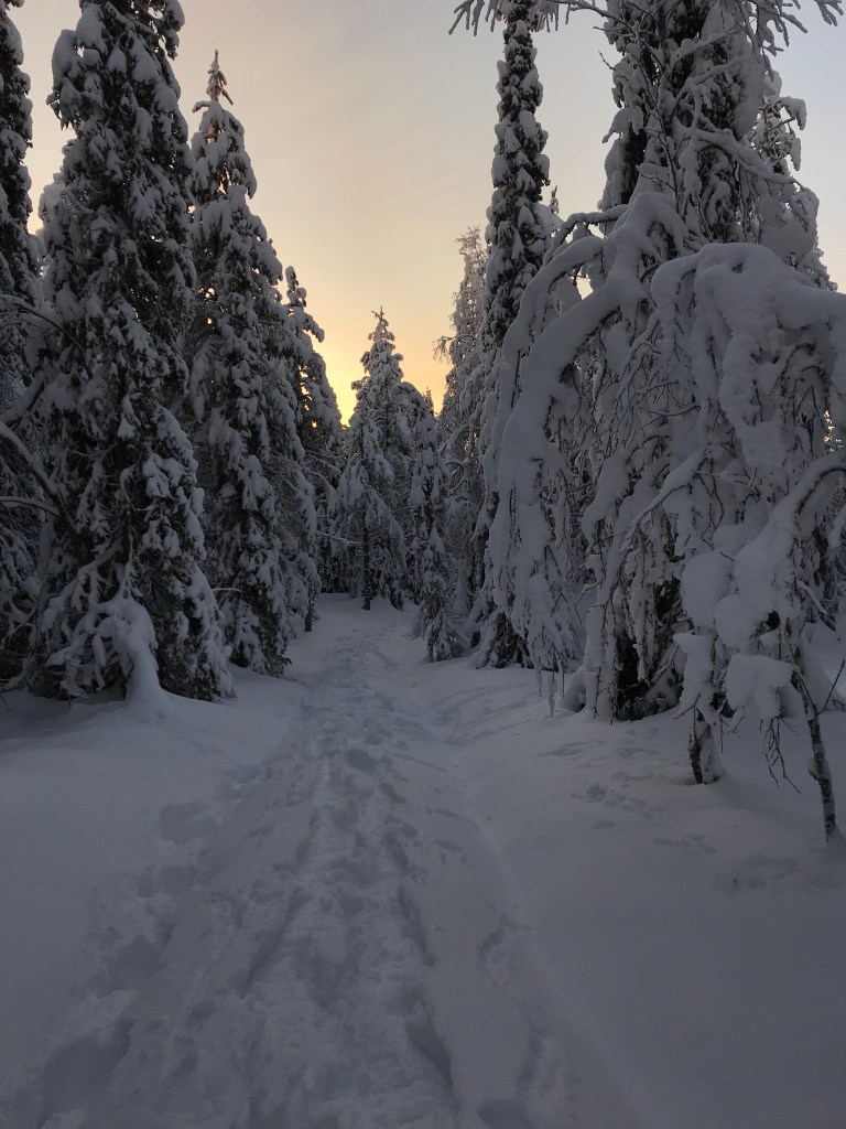Lompsis ja lompsis lumikengillä koira vasemmassa ja sauvat oikeassa kädessä. Hikisiä reissuja, vaan tulipa tehdyksi ja virkistävä reissu jokainen. Lumikengät on mieluisa kulkupeli, mutta ongelmaksi tullut sopivat kengät. Pitäisi olla pari numeroa liian suuret, jotta sukkia mahtuisi varpaiden palellessa. Mutta samalla pitäisi olla jämäkät, ettei jalan nosto ole liian rankkaa. Sähkösukat on hankinnassa. Jos on kokemuksia hyvistä merkeistä, niin mieluusti otan vastaan.