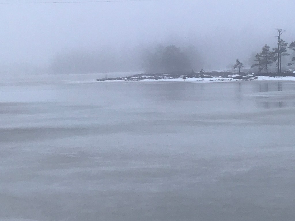Paikka on tosi hiljainen. Varmaankin paikalliset siellä käyvät kalassa, mutta erityisiä kulkemisen jälkiä siellä ei ole. Lähellä on kaksi suurta upeaa suota. Tutkailenkin nyt tiiviisti karttaa keksiäkseni tien, jota voisi kuvitella talvella pidettävän auki, että pääsisi autolla lähemmäs ja suksilla eteenpäin suoalueelle. Nyt ei suolla virtavedet vielä olleet jäässä. Uskaltauduin vain yhden yli, mutta seuraavan kohdalla otin järjen käteen. Kohtuullisen painava reppu oli selässä, eikä yksin etäisellä seudulla suolla virtaveteen uponneen ennuste ole kaksinen.