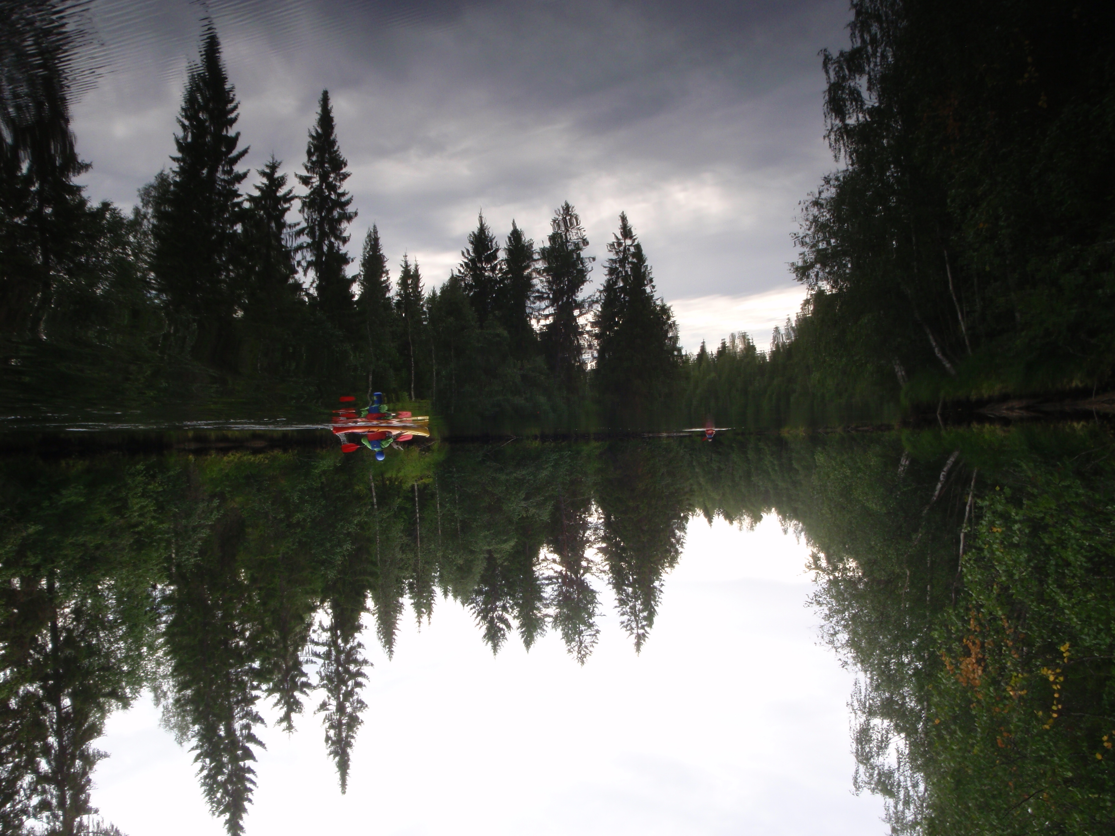 Jonkeri on jossain määrin tuttu paikka, pieni kylä Kuhmossa. Lähdettiin kerrattain toveriporukalla laskemaan Jongunjokea. Taisi sekin olla elokuuta. Kaverit vuokrasivat kajakit ja vuokrausyrittäjä kyseli, onko meillä kirves mukana. Vastailtiin vähän sisään päin hymyillen, että tuota noin, eipä ole juurikaan kirvestä mukana. No, kun tähdättiin siihen yhdelle autiotuvalle ja jouduttiin pienempään jokeen kurvaamaan torpalle päästäksemme, niin hoksattiin, miksi kirves olisi ollut tarpeen. Tuosta tosin päästiin ali pujahtamaan, eikä onneksi muuallakaan kirvestä tarvittu.