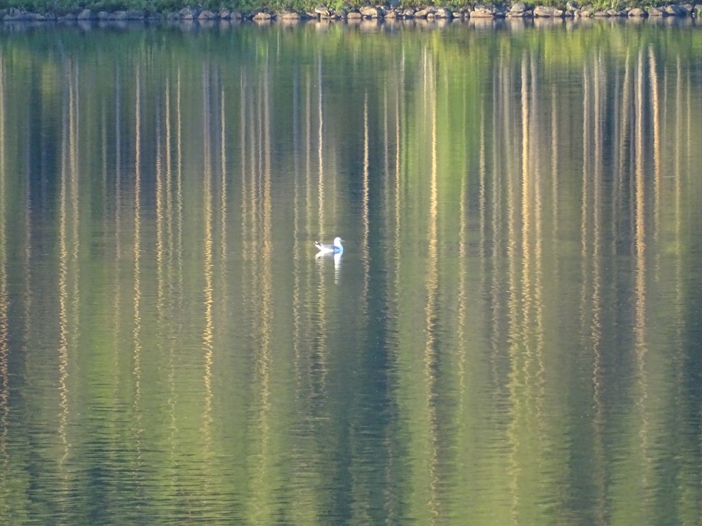 Istun nyt mökin pihassa autossa. Katse suuntautuu edessä olevalle autiolle järvelle, jonka ainut ääni on tänään ollut se, että paiskasin kaasupullon säilytyslokeron oven kiinni. Kaiku huusi vastarannalta: PAMMMMMMM! Piti hetki katsoa, ampuiko joku. Mutta minähän se vain ammuin itseäni. (Mulla on täällä ilmakivääri venäläisten varalta, mutten uskalla ampua sillä pilkkaa ittekseni, kun en oo varma kumminka päin se panos laitettiinkaan, heh.) Tarkennus: on tuossa 4 kuikkaa aika ajoin kommentoimassa touhujani.