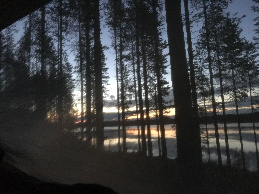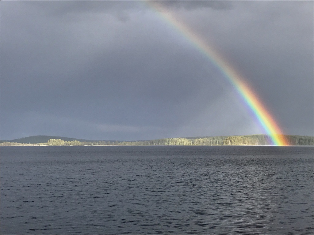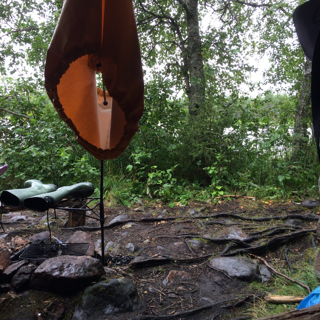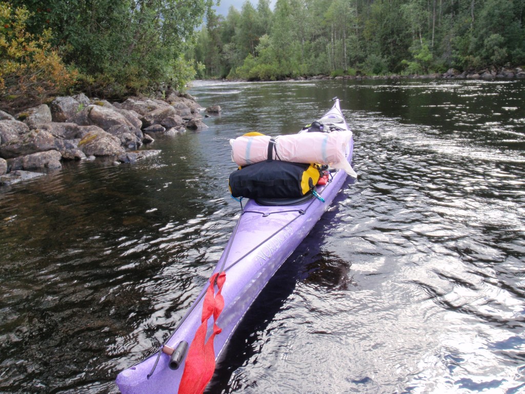 Jos aamu oli liki pläkä, niin paatille iltapäivällä palatessa oli tilanne toinen. Ainahan tuuli iltapäivästä nousee, mutta nyt oli tuimaa puuskaa mukana ja tuulensuunta kannaltani pelottava. Roikaisin ensin uimaan, keittelin kahvit ja tuumailin. Päädyin siihen, että teen ylimääräisen koukkauksen kyetäkseni ylittämään selkäveden sen kapeimmalta kohdalta. Meloin sitten rantoja pitkin pitemmän kautta. No, vanha melojan tieto on, että pahin puuska iskee juuri silloin, kun rantaan on molempiin suuntiin yhtä pitkä uintimatka. Näin kävi nytkin. Onneksi en uimasille joutunut, mutta kieli keskellä suuta sai sivuaallossa teutaroida ja väkisin meinasi aalto paiskata rantakivikkoon. Ankaralla melomisella pysyin säällisen matkan päässä rannasta. Ei tuossa nyt mitään läheltä piti -tilannetta ollut, olen melonut meressäkin lukuisia kertoja kovassa aallokossa. Vaan järvenaalto on suuttuessaan kyllä pelottavampi meikäläisen mielestä, terävämpää, äkkinäisempää ja heitteisempää. Ja kiviäkin saattaa yllättäen tulla eteen toisin kuin merellä. (En tiedä kauanko muorilla voimat riittää melakankea vääntää näissä tilanteissa. Maate mennessä tiesi meloneensa, kun selkä ja kyljet oli kuin tulessa. Vanhenemista.)